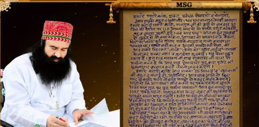 सरसा (सच कहूँ न्यूज)। रक्षा बंधन के अवसर पर पूज्य गुरु संत डॉ. गुरमीत राम रहीम सिंह जी इन्सां ने 11वीं चिट्ठी साध-संगत के लिए भेजी। आज शाह सतनाम जी धाम सरसा में आयोजित नामचर्चा के दौरान साध-संगत को चिट्ठी सुनाई गई। आइयें पढ़ते हैं पूज्य गुरु जी द्वारा भेजी गई चिट्ठी को…. हमारे प्यारे … Continue reading रक्षा बंधन पर सोहने सतगुरु जी की आई 11वीं चिट्ठी