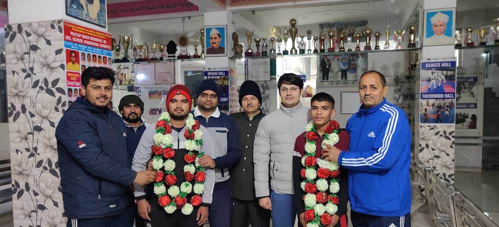 खरखौदा (सच कहूँ न्यूज)। खेलो इंडिया यूथ गेमस जूडो के लिए दिल्ली में दिनांक 27 व 28 दिसम्बर 2022 को ट्रायल हुआ जिसमें प्रताप स्कूल खरखौदा के प्रिंस 50 किग्रा व पुनीत चौहान 81 ने बेहतरीन प्रदर्शन कर अपना चयन खेलो इंडिया यूथ गेमस के लिए करवाया। खेलो इंडिया यूथ गेमस फरवरी में मध्य प्रदेश में आयोजित होंगे। विद्यालय प्रांगण में दोनों खिलाड़ियों का द्रोणाचार्य अवार्डी ओमप्रकाश दहिया, प्राचार्य धर्मप्रकाश आर्य, डॉ सुबोध दहिया, जूडो कोच मोहित पंवार, रोहित दहिया व कुश्ती कोच प्रदीप ने फूल माला पहनाकर व मिठाई खिलाकर स्वागत किया।