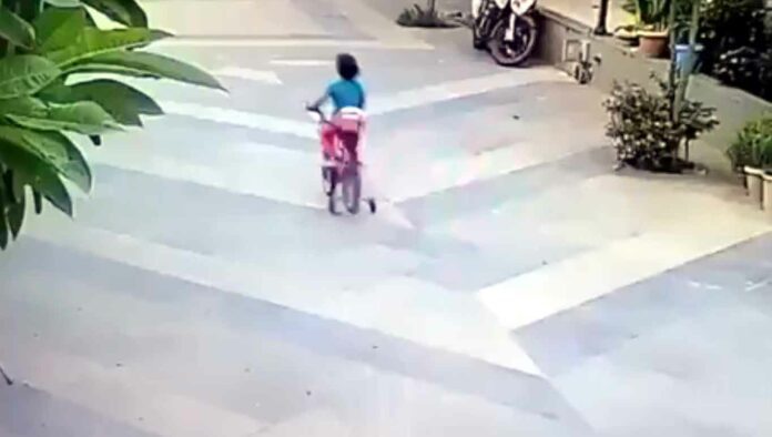 गुजरात के मेहसाणा स्थित स्पर्श विला सोसाइटी में एक चार साल की बच्ची साइकिल चला रही थी। अचानक कार को करीब आता देख बच्ची साइकिल से गिर गई। बच्ची के गिरने के बाद कार उसे कुचलते हुए आगे बढ़ गई। इस हादसे में बच्ची की मौत हो गई।#Gujarat #Mehsana pic.twitter.com/mK3c5cR9jN