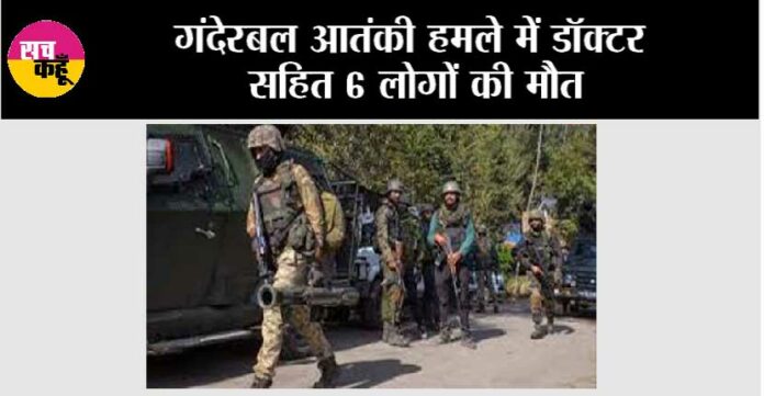 श्रीनगर (एजेंसी)। जम्मू-कश्मीर के गंदेरबल जिले में रविवार शाम को हुए आतंकी हमले में एक स्थानीय डॉक्टर सहित छह लोगों की मौत हो गई और पांच अन्य घायल हो गए। अधिकारियों ने बताया कि यह हमला श्रीनगर-लेह राजमार्ग पर गगनगीर के पास एक शिविर में हुआ जहां स्थानीय और गैर-स्थानीय मजदूर 6.5 किलोमीटर लंबी जेड-मोड़ सुरंग परियोजना के निर्माण पर काम कर रहे थे। अधिकारियों के अनुसार दो आतंकवादियों ने मजदूरों पर अंधाधुंध गोलीबारी की जिसके कारण दो गैर-स्थानीय मजदूरों की मौके पर ही मौत हो गई। हमले में एक स्थानीय डॉक्टर समेत नौ अन्य घायल हो गए। डॉक्टर सहित चार घायलों ने बाद में दम तोड़ दिया।