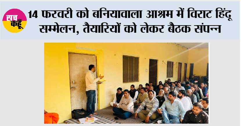 प्रताप नगर, सच कहूं राजेंद्र कुमार। बनियावाला आश्रम में आगामी 14 फरवरी को श्री श्री 1008 महेश्वरानंद सरस्वती जी महाराज (चिक्कन वाले गुरु जी) की पावन अगुवाई में एक भव्य विराट हिंदू सम्मेलन का आयोजन किया जाएगा। इस धार्मिक एवं सामाजिक आयोजन को लेकर क्षेत्र में विशेष उत्साह और उल्लास का माहौल बना हुआ है।