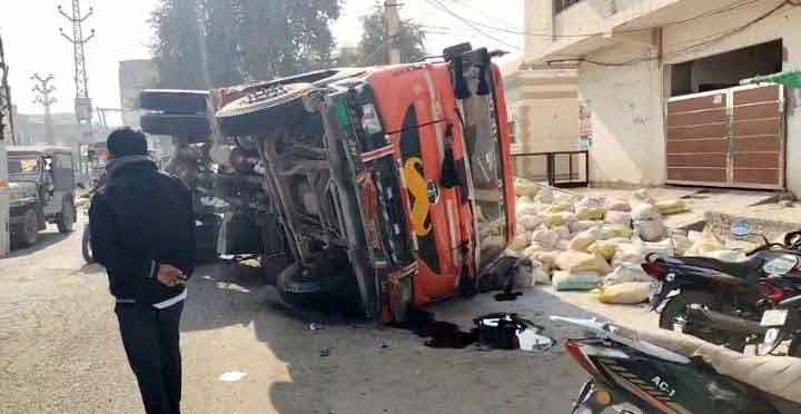 बताया जा रहा है कि ट्रोला ओवरलोड भरा हुआ था और ठेले वाले को बचाने के चक्कर में वह पलट गया। ट्रोला के परिचालक दिनेश ने बताया कि वह व चालक राजूराम ट्रोले में रूपनगढ़ से दाना भरकर पठानकोट के लिए रवाना हुए। जब वे गुरुवार सुबह करीब छह बजे टाउन में बस स्टैंड के पास पहुंचे तो अचानक सड़क पर आए ठेले वाले को बचाने के चक्कर में ट्रोला अनियंत्रित होकर पलट गया। ट्रोले में अण्डरलोड माल भरा हुआ था। ट्रोला पलटने से चालक राजूराम के मामूली चोट आई।