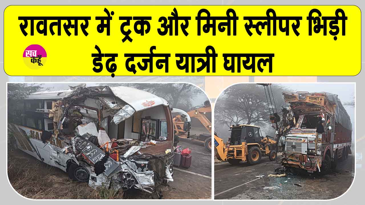 Hanumangarh Accident: हनुमानगढ़। रावतसर थाना क्षेत्र में मंगलवार सुबह घने कोहरे के कारण सड़क हादसा हो गया। मेगा हाइवे पर गांव धन्नासर के समीप ट्रक और निजी स्लीपर बस के बीच आमने-सामने हुई भिड़ंत में ट्रक व बस चालकों सहित करीब डेढ़ दर्जन से अधिक यात्री घायल हो गए। हादसा इतना तेज था कि दोनों वाहनों के आगे के हिस्से बुरी तरह क्षतिग्रस्त हो गए। प्रत्यक्षदर्शियों के अनुसार मंगलवार सुबह करीब आठ बजे 29 डीडब्ल्यूडी और धन्नासर के बीच हाइवे पर घना कोहरा छाया हुआ था, जिससे दृश्यता काफी कम हो गई थी। Hanumangarh News