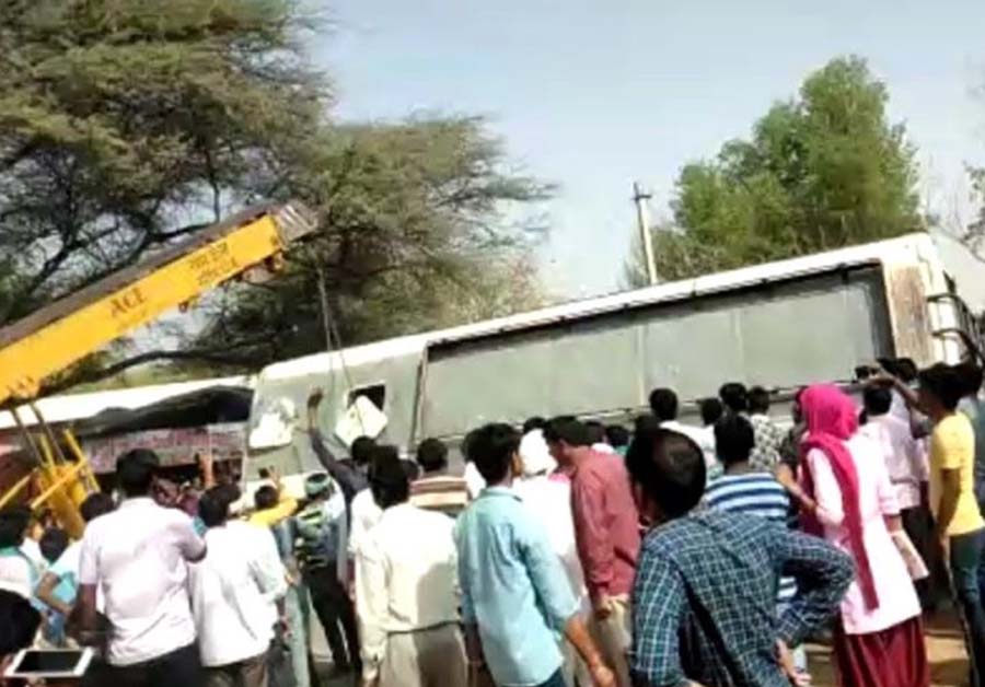 जयपुर। शहर के पास चौमूं में शुक्रवार को एक रोडवेज बस पलटने से दो लोगों की मौत हो गई। उदयपुरिया तिगरिया (accident) के पास हुए हादसे में एक दर्जन से ज्यादा लोग घायल बताए जा रहे हैं। जिन्हें प्राथमिक उपचार के लिए अस्पताल में भर्ती करवाया गया है। दुर्घटना की जानकारी मिलने के बाद पुलिस मौके पर पहुंची। जिसके बाद राहत कार्य शुरू किया गया।