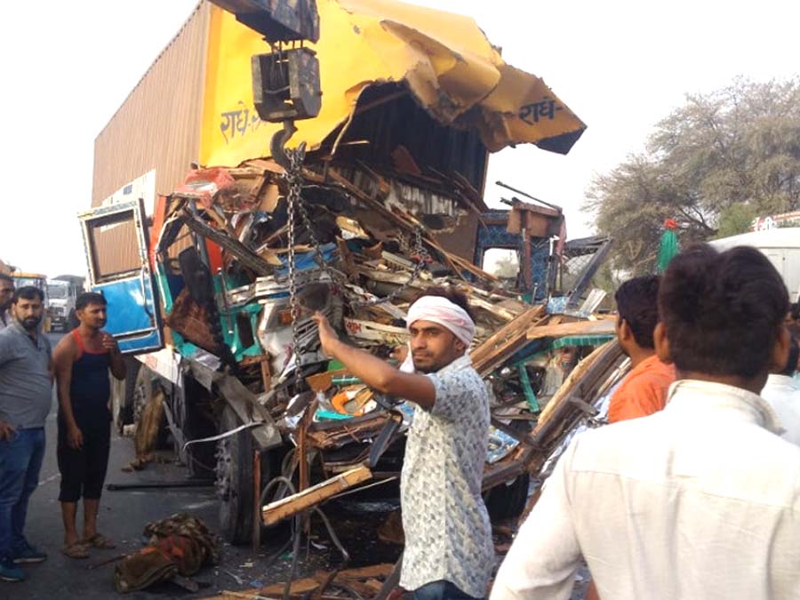 शाहपुरा (जयपुर)। शाहपुरा में शुक्रवार को नेशनल हाईवे पर एक तेज रफ्तार कंटेनर खड़े ट्रेलर में जा घुसा जिससे कंटेनर के (accident) ड्राइवर और हेल्पर की दर्दनाक मौत हो गई। दोनों बुरी तरह केबिन में फंस गए थे जिन्हें चार क्रेनों की मदद से केबिन से निकाला गया। दोनों को गंभीर हालत में पास के अस्पताल ले जाया गया जहां डाक्टरों ने उन्हें मृत घोषित कर दिया।