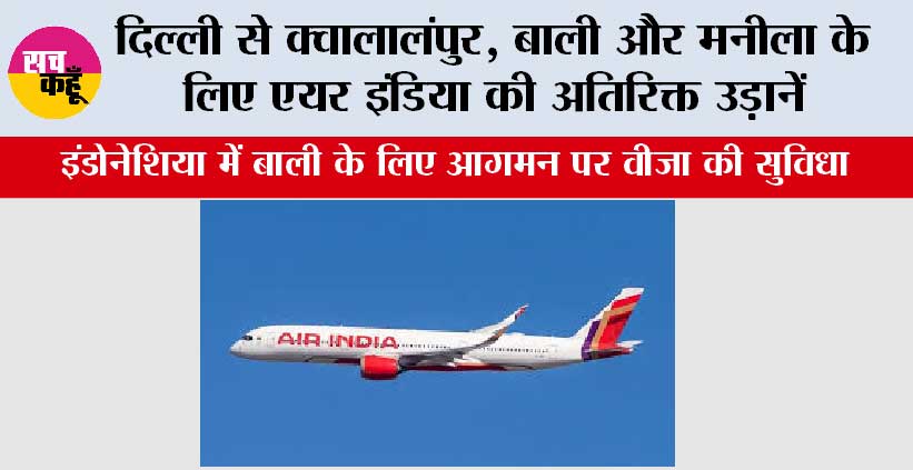 नई दिल्ली (सच कहूँ न्यूज)। नये साल के जश्न के दौरान बढ़ती मांग को देखते हुए टाटा समूह की विमान सेवा कंपनी एयर इंडिया ने शुक्रवार को बाली, मनीला और क्वालालंपुर के लिए अतिरिक्त उड़ानों की घोषणा की। एयरलाइंस ने बताया कि वह 01 दिसंबर से सप्ताहांत पर दिल्ली से बाली के लिए तीन अतिरिक्त उड़ानों का संचालन करेगी जिससे इंडोनेशिया के इस लोकप्रिय पर्यटन स्थल के लिए सप्ताह में 10 उड़ानें हो जायेंगी। दिल्ली से फिलिपींस के मनीला के लिए 11 दिसंबर से हर दिन उड़ानें उपलब्ध होंगी। फिलहाल इस मार्ग पर सप्ताह में पांच उड़ानें हैं। राष्ट्रीय राजधानी से मलेशिया के क्वालालंपुर के लिए एयर इंडिया ने हाल ही में शुक्रवार, शनिवार और रविवार को अतिरिक्त उड़ानों का संचालन शुरू किया है। इन तीनों मार्गों पर एयरलाइंस एयरबस के ए320 परिवार के विमानों का परिचालन करेगी। एयर इंडिया की प्रेस विज्ञप्ति में कहा गया है कि मलेशिया और फिलिपींस में भारतीय पासपोर्ट पर वीजा मुक्त प्रवेश मिलता है। वहीं, इंडोनेशिया में बाली के लिए आगमन पर वीजा की सुविधा है।