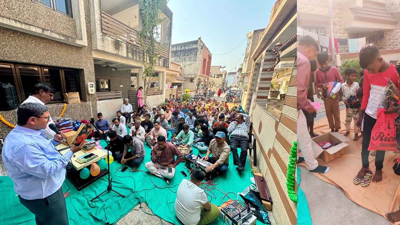 अहमदाबाद (सच कहूँ न्यूज)। Welfare Works: गुजरात के अहमदाबाद ब्लाक की साध संगत के द्वारा परम पूजनीय शाह सतनाम जी महाराज के पावन एमएसजी अवतार माह के उपलक्ष्य में नामचर्चा का आयोजन किया गया तथा 106 जरूरतमंद बच्चों को गर्म कपड़े, चप्पल इत्यादि वितरित किए। पावन अवतार माह के उपलक्ष्य में अहमदाबाद की साध संगत के द्वारा आयोजित नामचर्चा में बड़ी तादाद में डेरा श्रद्धालुओं ने शिरकत की और भजन शबद गाकर पावन अवतार महीने की खुशियां मनाई। Ahmedabad News