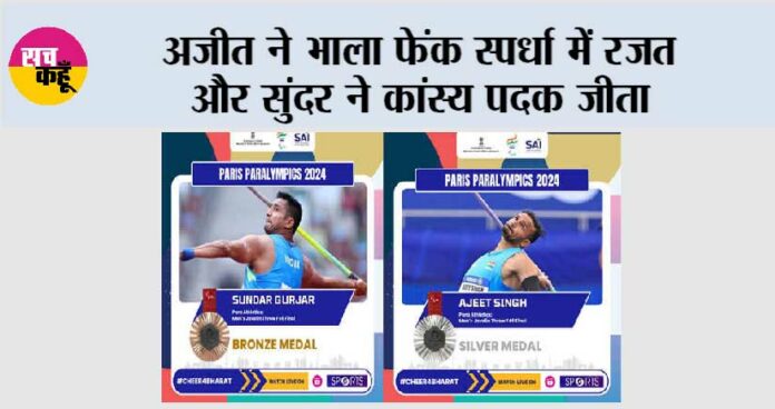 पेरिस (एजेंसी)। भारतीय एथलीट अजीत सिंह ने अपना सर्वश्रेष्ठ प्रदर्शन करते हुए पेरिस पैरालंपिक की भाला फेंक एफ46 वर्ग की स्पर्धा में रजत पदक और हमवतन सुंदर सिंह गुजर ने कांस्य पदक जीता। मंगलवार देर रात हुये मुकाबले में अजीत सिंह ने 65.62 मीटर के सर्वश्रेष्ठ थ्रो के साथ रजत पदक अपने नाम किया। स्पर्धा के दौरान सुंदर सिंह गुर्जर 64.96 मीटर के अपने चौथे थ्रो के बाद दूसरे स्थान पर थे, लेकिन अजीत सिंह ने वापसी करते 65.62 मीटर का थ्रो करते हुए दूसरा स्थान हासिल किया।