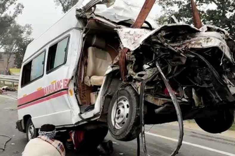 भदोही में ट्रक से टकराई एंबुलेंस, पांच मरे