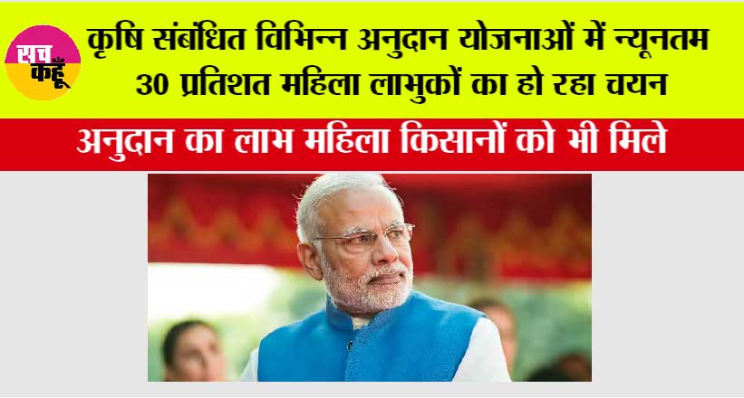 कृषि से जुड़ी विभिन्न अनुदान योजनाओं में महिला किसानों की भागीदारी न्यूनतम 30 प्रतिशत हो, इसकी लगातार कोशिश की जा रही है। उदाहरण के लिए ड्रैगन फ्रूट विकास योजना के तहत अनुदान पाने वाले कुल लाभुकों में 30 प्रतिशत महिला किसान हों, इसका प्रयास हो रहा है। इसी तरह से एकीकृत बागवानी विकास मिशन अंतर्गत पपीता विकास योजना, आम एवं लीची के क्षेत्र विस्तार की योजना, राज्य योजना के तहत मुख्यमंत्री बागवानी मिशन अंतर्गत अंजीर फल विकास योजना, स्ट्रॉबेरी विकास योजना और क्लस्टर में बागवानी की योजना के तहत भी अनुदान दिया जाता है। इन सभी में अनुदान पाने वाले लाभुकों के चयन में महिला किसानों की भागीदारी सुनिश्चित की जा रही है।