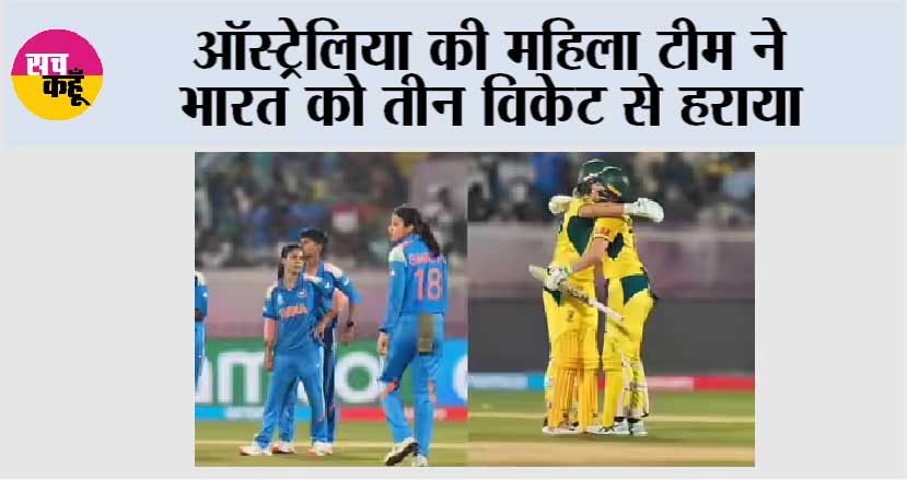 इससे पहले आज यहां आॅस्ट्रेलिया ने टॉस जीतकर पहले गेंदबाजी करने का फैसला किया। बल्लेबाजी करने उतरी भारत की प्रतिका रावल और स्मृति मंधाना की सलामी जोड़ी अच्छी शुरूआत करते हुए पहले विकेट के लिए 155 रनों की शतकीय साझेदारी कर बड़े स्कोर की नींव रखी। 25वें ओवर में सोफी मोलिन्यू ने शतक की ओर बढ़ रही स्मृति मंधाना को आउटकर भारत को पहला झटका दिया। स्मृति मंधाना ने 66 गेंदों में नौ चौके और तीन छक्के लगाते हुए 80 रनों की पारी खेली। इसके बाद 31वें ओवर में ऐनाबेल सदरलैंड ने प्रतिका रावल 75 को अपना शिकार बना लिया। रावल ने अपनी पारी में 10चौके और एक छक्का लगाया। कप्तान हरमनप्रीत कौर (22), हरलीन देओल (38), जेमिमाह रोड्रिग्स (33), रिचा घोष (32) और अमनजोत कौर 16 रन बनाकर आउट हुई। सदरलैंड ने बेहतरीन गेंदबाजी का प्रदर्शन करते हुए भारतीय टीम को 48.5 ओवर में 330 के स्कोर पर रोक दिया।