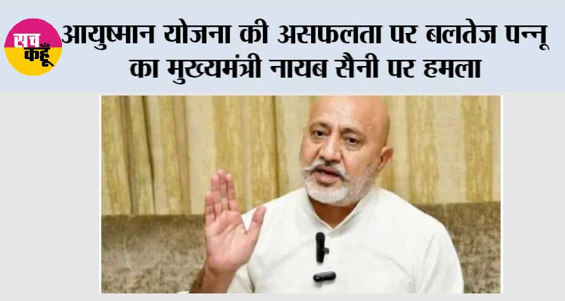 चंडीगढ़। आम आदमी पार्टी (आप) पंजाब के स्टेट मीडिया इंचार्ज बलतेज पन्नू ने हरियाणा के मुख्यमंत्री नायब सिंह सैनी पर तीखा हमला बोला है। पन्नू ने कहा कि अपनी नाकामियों को छिपाने के लिए हरियाणा के मुख्यमंत्री हर दूसरे दिन पंजाब आकर आप सरकार के कामकाज पर बेबुनियाद सवाल उठाते हैं, जबकि सच यह है कि हरियाणा में खुद हेल्थ सर्विस वेंटिलेटर पर हैं।इंडियन मेडिकल एसोसिएशन (आईएमए) ने हरियाणा सरकार को साफ चेतावनी दी है कि आयुष्मान कार्ड का बकाया न देने की वजह से अब ज़्यादातर प्राइवेट अस्पताल इस योजना के तहत इलाज बंद करने जा रहे हैं। मुख्यमंत्री सैनी को बताना चाहिए कि उनके राज्य में गरीब लोग अब इलाज के लिए कहां जाएंगे?