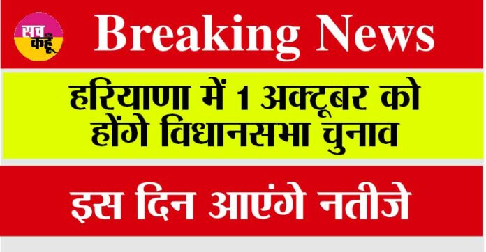 हरियाणा की 90 सदस्यीय विधानसभा के लिए एक ही चरण में एक अक्टूबर को मतदान होगा। इसके लिए अधिसूचना पांच सितम्बर को जारी की जायेगी और नामांकन 12 सितम्बर तक किये जा सकेंगे। नामांकन पत्रों की जांच 13 सितम्बर को की जायेगी और 16 सितम्बर तक नाम वापस लिए जा सकेंगे।