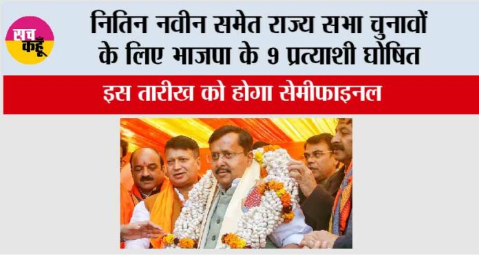 BJP Rajya Sabha Candidate List: नई दिल्ली। भारतीय जनता पार्टी (भाजपा) ने अपने अध्यक्ष नितिन नवीन को बिहार से राज्य सभा चुनावों के लिए उम्मीदवार बनाया है। पार्टी ने उनके अलावा विभिन्न राज्यों से आठ और उम्मीदवार घोषित किये हैं। भाजपा के राष्ट्रीय महासचिव अरुण सिंह ने मंगलवार को बताया कि श्री नवीन के अलावा शिवेश कुमार को राज्यसभा के द्विवार्षिक चुनावों के लिए बिहार से उम्मीदवार बनाया गया है। पार्टी ने पश्चिम बंगाल से राहुल सिन्हा को अपना उम्मीदवार घोषित किया है। असम से तेराश गोवाला और जोगेन मोहन को उम्मीदवार बनाया गया है। छत्तीसगढ़ से सुश्री लक्ष्मी वर्मा को तथा हरियाणा से संजय भाटिया को प्रत्याशी बनाया है। ओडिशा से मनमोहन सामल और सुजीत कुमार पार्टी प्रत्याशी होंगे। पार्टी सूत्रों के अनुसार विभिन्न राज्यों में संगठनात्मक संतुलन और राजनीतिक रणनीति को ध्यान में रखते हुए उम्मीदवारों का चयन किया गया है।