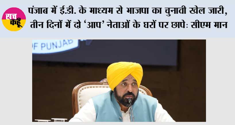 पंजाब में ई.डी. के माध्यम से भाजपा का चुनावी खेल जारी, तीन दिनों में दो ‘आप’ नेताओं के घरों पर छापे: सीएम मान