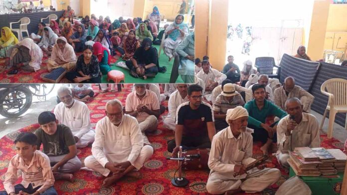 Uchana News: भजनवाणी सुनते हुई नाम चर्चा में उपस्थित भाई, बहनें