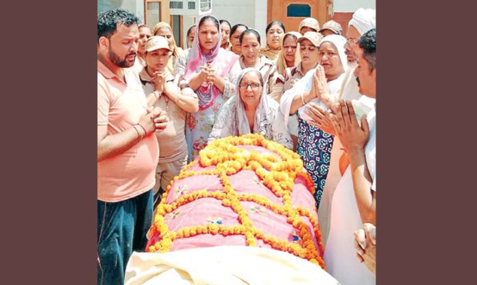 नाभा/पटियाला(सच कहूँ/तरूण कुमार शर्मा)। बीती रात अपनी स्वासों रूपी पूंजी पूरी कर कुल मालिक के चरण कमलों में सचखंड जा बिराजी नाभा की रोमिका इन्सां छोटी आयु में ही उन शरीरदानियों की सूची में शामिल हो गई, जिनके द्वारा डेरा सच्चा सौदा द्वारा चलाए जा रहे मानवता भलाई के 142 कार्यों के तहत मैडीकल रिसर्च के लिए मरणोंपरांत अपना शरीर दान करने का प्रण लिया हुआ था। रोमिका इन्सां की मृत देह उत्तर प्रदेश के बरेली शहर के मैडीकल इंस्टीच्यूट को दान की गई। ब्लॉक भंगीदास राजेश इन्सां, 45 मैबर विजय कुमार इन्सां सहित ब्लॉक नाभा की समूह समितियों के जिम्मेवारों सहित भारी तादाद में पहुंचे डेरा श्रद्धालुओं द्वारा बिनती का शब्द बोलकर रोमिका इन्सां की मृत देह को श्रद्धांजलि देते अंतिम विदाई दी गई।