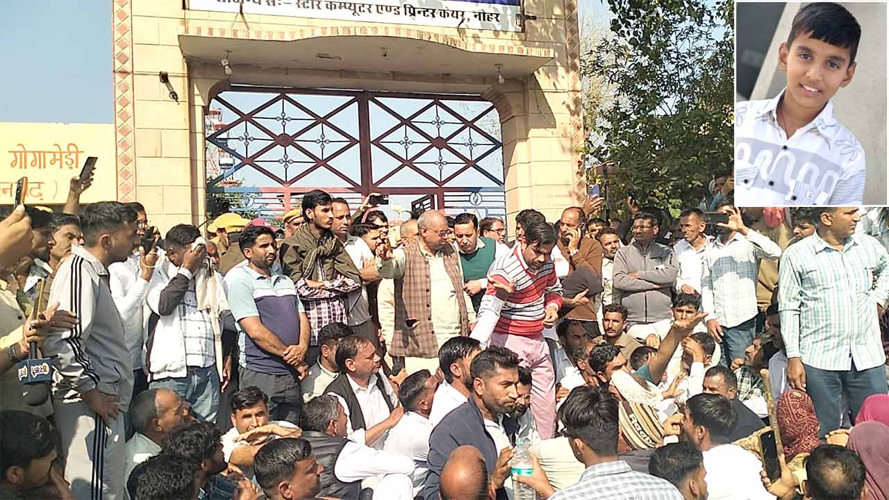 गोगामेड़ी (सच कहूँ/राजेश बैनीवाल)। Nethrana News: हरियाणा की सीमा से सटे गांव नेठराना में 5वीं कक्षा के छात्र अभिषेक शर्मा की संदिग्ध परिस्थितियों में मौत हो गई। मासूम की मौत के बाद क्षेत्र में जनाक्रोश फूट पड़ा है। मासूम अभिषेक को न्याय दिलाने की मांग को लेकर आज समाज का हर वर्ग सड़कों पर उतर आया। परिजनों ने इसे महज हादसा मानने से इनकार करते हुए हत्या की गहरी आशंका जताई है और पुलिस से सख्त कार्रवाई की मांग की है।Gogamedi News