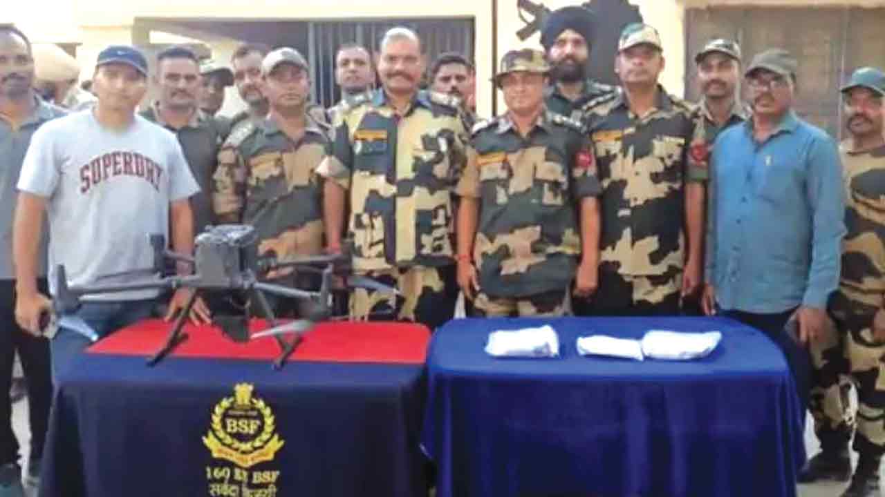 बीएसएफ ने तीन पैकेट हेरोइन व पाक ड्रोन पकड़ा