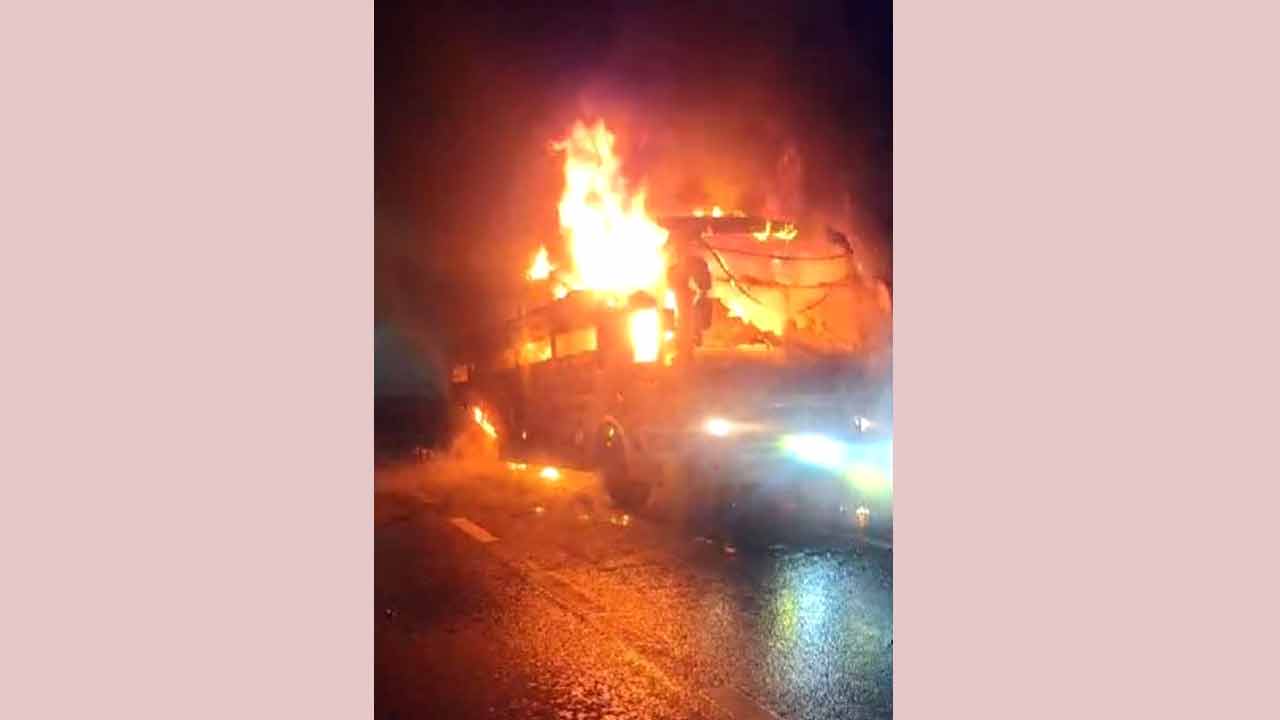 मथुरा (एजेंसी)। Mathura Bus Fire News: यमुना एक्सप्रेसवे पर गुरुवार तड़के उस समय हड़कंप मच गया, जब राया थाना क्षेत्र में माइलस्टोन 110 के पास एक यात्री बस में अचानक आग लग गई। आग इतनी तेजी से फैली कि कुछ ही मिनटों में पूरी बस धू-धू कर जलने लगी। Mathura News