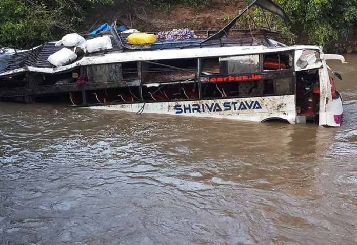 भोपाल (एजेंसी)। मध्यप्रदेश के गृह मंत्री डॉ नरोत्तम मिश्रा ने धार और खरगोन जिले की सीमा पर हुए बस हादसे के संदर्भ में बताया कि अब तक 12 लोगों के निधन की खबर है, वहीं 15 लोगों का रेस्क्यू किया गया है। डॉ. मिश्रा ने संवाददाताओं से चर्चा के दौरान बताया कि इंदौर से पुणे जा रही महाराष्ट्र सरकार की बस धामनोद के पास खलघाट में नर्मदा नदी (Bus Fell In Narmada River) में गिर गई। मौके पर सभी जिम्मेदार प्रशासनिक अधिकारी और रेस्क्यू टीमें पहुंच गई है। रेस्क्यू के सभी प्रयास किए जा रहे हैं। अब तक 15 लोगों का रेस्क्यू किया गया है। करीब 12 लोगों के निधन की खबर है। उन्होंने कहा कि प्रथमदृष्टया लगता है कि स्टीयरिंग या ब्रेक फेल हुआ। बस किसी तकनीकी खराबी के कारण रेलिंग तोड़ कर नीचे जा गिरी। पानी का प्रवाह बहुत तेज है। डॉ मिश्रा ने बताया कि बस में 50 से 55 लोगों के सवार होने के कयास हैं। इंदौर से 12 लोग बस में चढ़े थे। दुर्घटना के कारणों का पता लगाया जा रहा है। वहीं धार के पुलिस अधीक्षक आदित्य प्रताप सिंह ने बताया कि बस हादसे के बाद चलाए गए रेस्क्यू आॅपरेशन के दौरान अब तक 12 लोगों के शवों को निकाला गया है। बस इंदौर से महाराष्ट्र के अमलनेर जा रही थी।