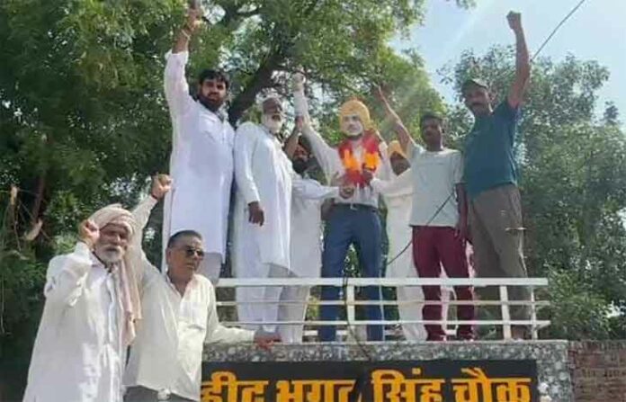 हनुमानगढ़। शहीद-ए-आजम भगतसिंह की जयंती (Birth anniversary of Bhagat Singh) (28 सितम्बर) के उपलक्ष्य में शनिवार को जिला मुख्यालय के निकटवर्ती गांव मक्कासर स्थित शहीद भगतसिंह चौक पर कार्यक्रम हुआ। इस दौरान मौजूद ग्राम पंचायत प्रशासक बलदेव सिंह सहित ग्रामीणों ने शहीद भगतसिंह की मूर्ति पर माल्यार्पण कर उन्हें नमन करते हुए श्रद्धांजलि दी। ग्राम पंचायत प्रशासक बलदेव सिंह ने कहा कि आज लोकतंत्र में जब कोई अपनी मांगों के लिए आंदोलन करता है तो उसके रास्ते में कीलें लगा दी जाती हैं और दीवार निकाल दी जाती है। Hanumangarh News