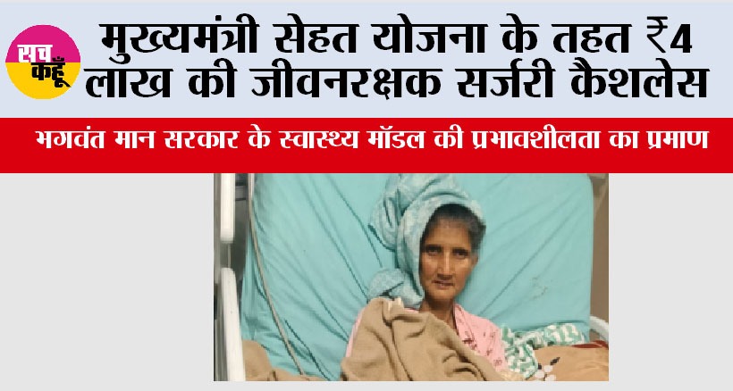 चंडीगढ़ (सच कहूँ न्यूज़)। Mukhyamantri Sehat Yojana: मुख्यमंत्री सेहत योजना के तहत अब तक के सबसे बड़े दावों में शामिल एक मामले में ₹4 लाख की जीवनरक्षक सर्जरी पूरी तरह कैशलेस की गई। यह भगवंत मान सरकार के उस स्वास्थ्य मॉडल की मज़बूती को दर्शाता है, जो स्थानीय स्तर पर तेज़, प्रभावी और भरोसेमंद तरीके से काम कर रहा है।