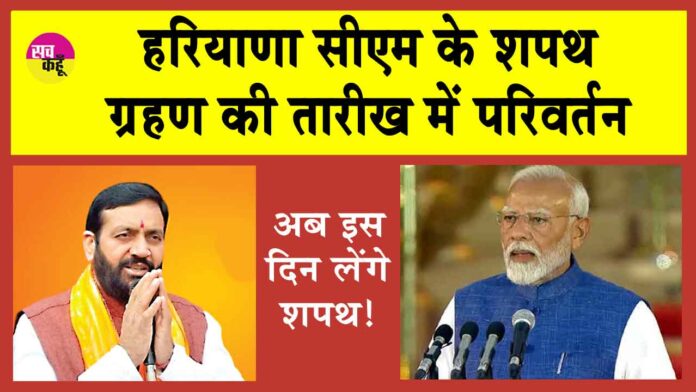Haryana CM Oath Ceremony: कुरुक्षेत्र (सच कहूँ/देवी लाल बारना)। नायब सिंह सैनी (Nayab Singh Saini) 17 अक्तूबर को पंचकूला के सेक्टर 5 स्थित परेड ग्राउंड में दूसरी बार हरियाणा के मुख्यमंत्री पद की शपथ लेंगे। यह जानकारी खुद कार्यवाहक सीएम ने दी। वे भाजपा के पूर्व प्रदेश अध्यक्ष आत्म प्रकाश मनचंदा के निवास स्थान पर पत्रकारों से बातचीत कर रहे थे। इस शपथ ग्रहण समारोह में देश के प्रधानमंत्री नरेंद्र मोदी शामिल होंगे और बीजेपी का उच्च नेतृत्व भी शिरकत करेगा। उन्होंने प्रदेशवासियों को विजयदशमी पर्व की शुभकामनाएं देते हुए उनके उज्जवल भविष्य की कामना की। Haryana News