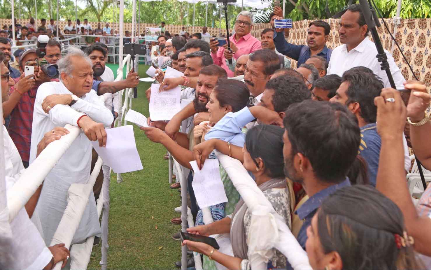 जनसुनवाई में संभागीय आयुक्त श्री राजेंद्र भट्ट, पुलिस महानिरीक्षक श्री अजय पाल सिंह लांबा, जिला कलक्टर श्री ताराचंद मीणा, पुलिस अधीक्षक श्री भुवन भूषण यादव सहित अन्य अधिकारी उपस्थित रहे और परिवेदनाओं के संबंध में जानकारी दी। इस दौरान शहर के एक युवा चित्रकार विशाल ने मुख्यमंत्री को उनका स्कैच भेंट किया, जिस पर मुख्यमंत्री ने अपने ऑटोग्राफ दिए। अन्य लोगों ने भी श्री गहलोत को उपरणा, पगड़ी, तस्वीरें आदि भेंट कर लोक हितकारी योजनाओं के लिए उनका आभार जताया। (Ashok Gehlot)