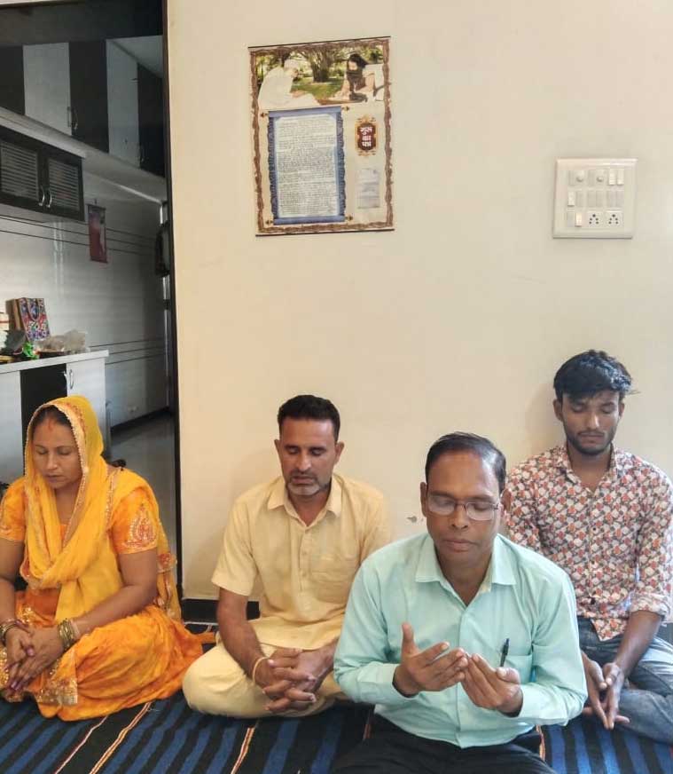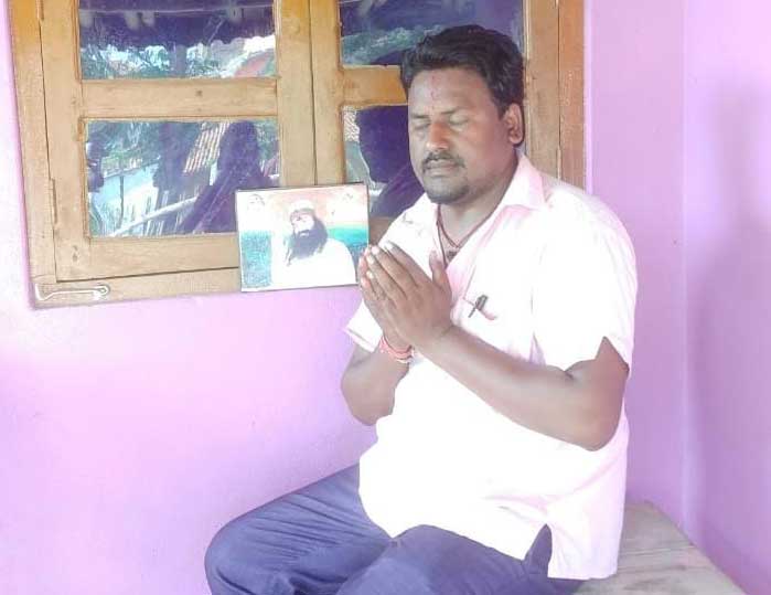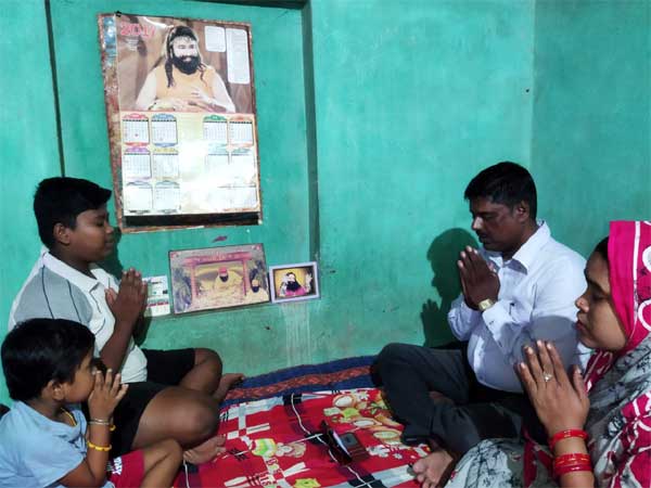 बच्चे की सलामती के लिए पूज्य गुरु जी से अरदास करते हुए डेरा श्रद्धालु
