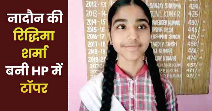 हिमाचल प्रदेश में अव्वल स्थान पर आने वाली रिधिमा 99.86 प्रतिशत अंक हासिल किए हैं। वहीं, दूसरे स्थान पर मात्र एक अंक पीछे कांगड़ा के न्यूगल मॉडल पब्लिक सीनियर सेकेंडरी स्कूल भवारना की कृतिका शर्मा 698 अंकों के साथ रही। कृतिका ने 99.71 प्रतिशत अंक लेकर मेरिट में दूसरा स्थान बनाया है। तीसरा स्थान फिर एक अंक के अंतर से तीन छात्रों ने साझा किया है। बिलासपुर के राजकीय सीनियर सैकेंडरी स्कूल बर्थिन के शिवम शर्मा, ग्लोरी इंटरनेशनल स्कूल रोहडू, शिमला की धृति तेगटा व भारती विद्यापीठ पब्लिक सीनियर सैकेंडरी स्कूल बैजनाथ की रूशिल सूद ने ने 697 अंकों के साथ 99.57 प्रतिशत अंक हासिल कर दसवीं की परीक्षा में प्रदेश में तीसरा स्थान प्राप्त किया है।