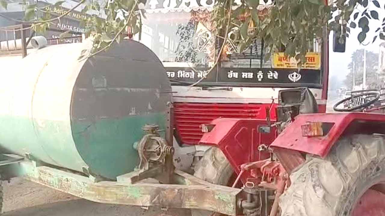 फोटो: रानियां02- निजी बस और ट्रैक्टर-टैंकर के बीच टक्कर का दृश्य।