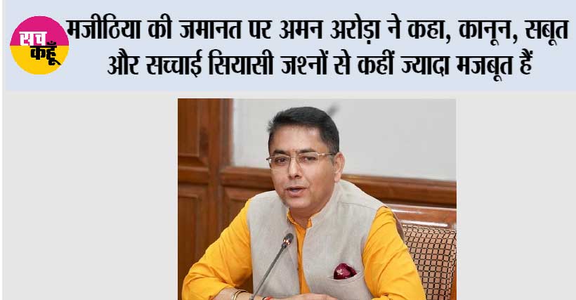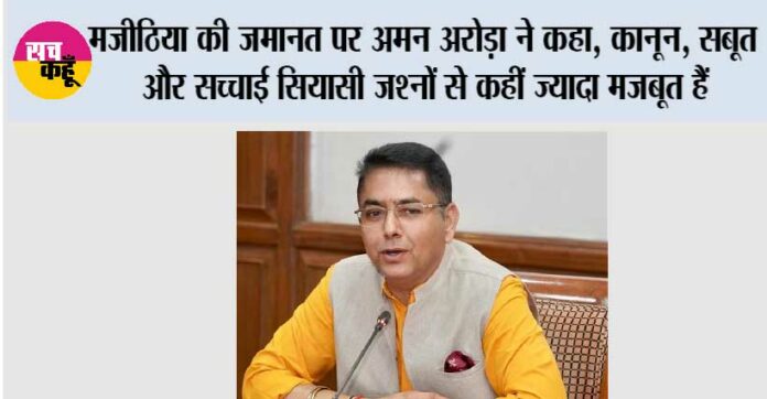 अमन अरोड़ा ने कहा कि जमानत हिरासत की अवधि और प्रक्रियागत औपचारिकताओं के पूरा होने से संबंधित तकनीकी आधारों पर दी गई है, न कि मामले की गुणवत्ता के आधार पर। उन्होंने कहा कि मजीठिया को कोई क्लीन चिट नहीं दी गई है। बड़े पैमाने पर भ्रष्टाचार के आरोप बरकरार हैं और अब अदालत में इनकी गहराई से जांच की जाएगी।