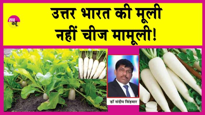 डॉ. संदीप सिंहमार। उत्तर भारत में मूली की खेती किसानों के लिए बहुत लाभप्रद हो सकती है। मूली की खेती के लिए सबसे उपयुक्त समय भी अक्टूबर का महीना माना जाता है। कम लागत की इस खेती से किसानों को ज्यादा लाभ मिलने की उम्मीद रहती है सबसे खास बात यह है कि उत्तर भारत के राज्य हरियाणा पंजाब राजस्थान व उत्तर प्रदेश की मिट्टी मूली की खेती के लिए सबसे उन्नत मानी जाती है।