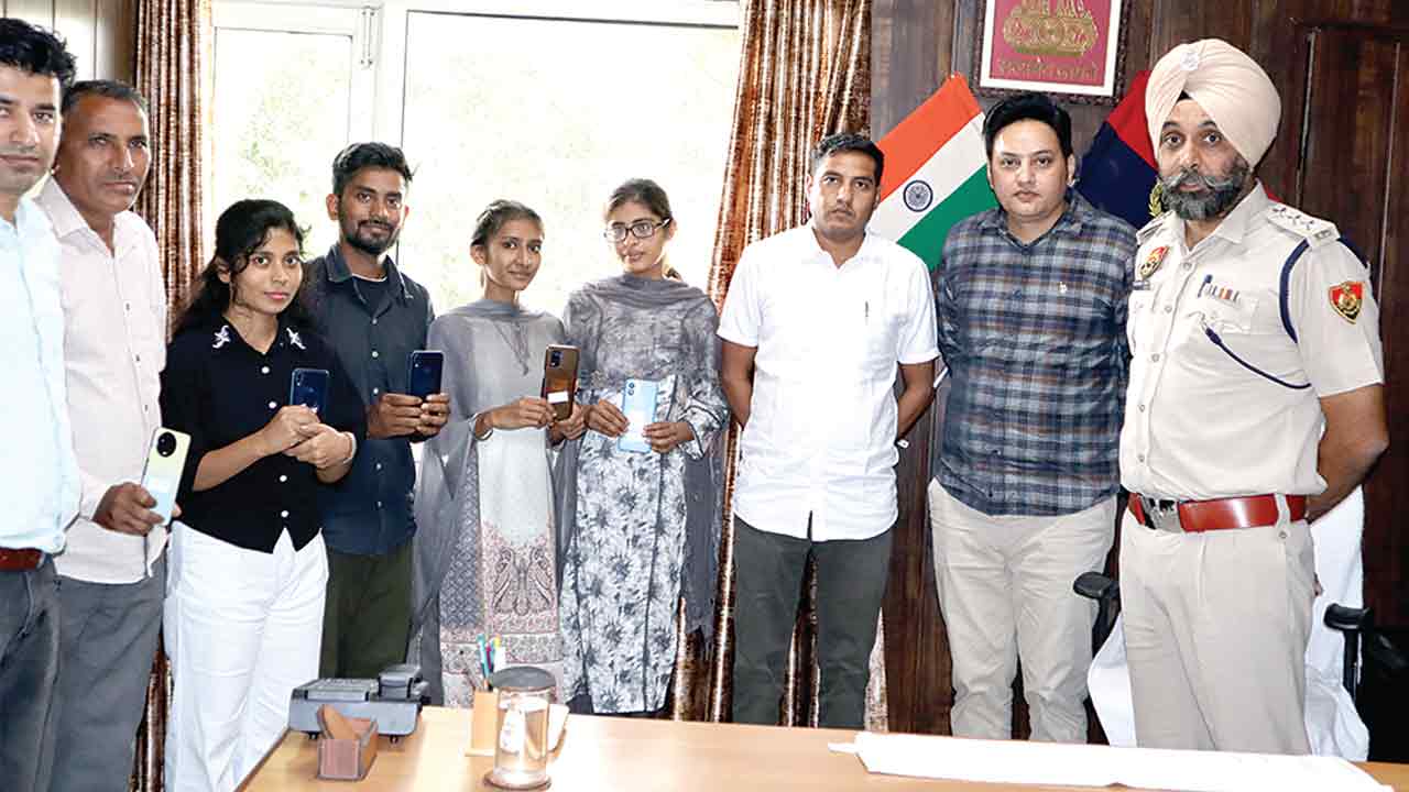 सरसा (सच कहूँ न्यूज)। Sirsa News: साइबर सेल ने अगस्त माह में 35 गुमशुदा मोबाइल फोन को ट्रेस कर 10 मोबाइल उनके असली मालिकों को सौंपे। बरामद मोबाइलों की कीमत लाखों रुपए आंकी गई है। पुलिस अधीक्षक सरसा डॉ. मंयक गुप्ता के दिशा-निर्देशों पर कार्रवाई करते हुए उप पुलिस अधीक्षक आदर्शदीप सिंह ने वीरवार को साइबर सेल इंचार्ज रणजीत सिंह व साइबर थाना प्रभारी सुभाष कुमार की मौजूदगी में अपने कार्यालय में यह मोबाइल उनके असली मालिकों को सौंपे। फोन पाकर मोबाइल मालिकों के चेहरे खुशी से खिल उठे और उन्होंने सरसा पुलिस तथा एसपी डॉ. मंयक गुप्ता का आभार व्यक्त किया। Sirsa News