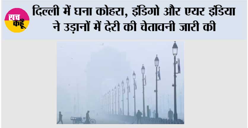 नई दिल्ली। दिल्ली-राष्ट्रीय राजधानी क्षेत्र (एनसीआर) में सोमवार सुबह घने कोहरा छाया रहा, जिसके कारण यहां के इंदिरा गांधी अंतरराष्ट्रीय हवाई अड्डा पर दृश्यता कम रही और इंडिगो और एयर इंडिया सहित विभिन्न विमानन कंपनियों ने उड़ानों में संभावित देरी को लेकर चेतावनी जारी की। मौसम विभाग के अनुसार पालम में दृश्यता सुबह करीब 4:30 बजे 100 मीटर तक गिर गयी और 5-7 किलोमीटर प्रति घंटे की हल्की पश्चिमी हवाओं के साथ इसके और घटकर 50 मीटर तक आने का अनुमान है।