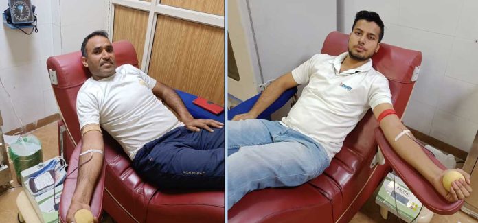 जटवाड़ा (सोनीपत)। पूज्य गुरु संत डॉ. गुरमीत राम रहीम सिंह जी इन्सां की पावन शिक्षाओं पर चलते हुए सोनीपत के जटवाड़ा निवासी विक्रांत इन्सां और सुनील इन्सां ने एक जरूरतमंद मरीज को एक-एक यूनिट रक्तदान कर मानवता का फर्ज निभाया। प्राप्त जानकारी के अनुसार, परशुराम निवासी मकीमपुर को किडनी की बीमारी की समस्या के चलते उनको रक्त की जरूरत थी उधर जैसी ही डेरा सेवादारों को पता चला तो विक्रांत इन्सां व सुनील इन्सां ने तुरंत जाकर अस्पताल में रक्तदान किया। आपको बता दें कि पूज्य गुरु जी द्वारा चलाए जा रहे मानवता भलाई के कार्य 147 साध-संगत बढ़ चढ़ कर रही है।
