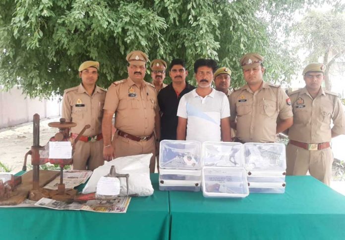 जानकारी देते हुए पुलिस अधीक्षक आदित्य लांग्हे ने बताया कि बीती शनिवार की रात डिडौली थाना पुलिस को सूचना मिली थी कि थाना क्षेत्र में हटव्वा जाने वाले मार्ग पर स्थित एक आम के बाग में अवैध हथियार बनाने की फैक्ट्री संचालित है, जहां भारी मात्रा में अवैध हथियार बनाए जा रहे है। सूचना मिलने के बाद थाना प्रभारी पीके चौहान अपनी टीम के साथ बीती शनिवार की देर रात फैक्ट्री पर छापा मारा।पुलिस को देख एक आरोपी तो मौके से अंधेरा का फायदा उठाकर भाग निकला, जबकि दिल्लू उर्फ दिलदार उर्फ दिलशाद पुत्र मेंहदी हसन निवासी मौहल्ला ज्लाउद्दीपुरा कस्बा व थाना किठौर जिला मेरठ को मौके से गिरफ्तार कर लिया। इसके साथ ही पुलिस टीम ने मौके से छह अवैध तमंचे, तीन अधबने तमंचे, एक खोखा कारतूस, तीन तमंचे की नाल और अवैध शस्त्र बनाने के उपकरण बरामद किए।