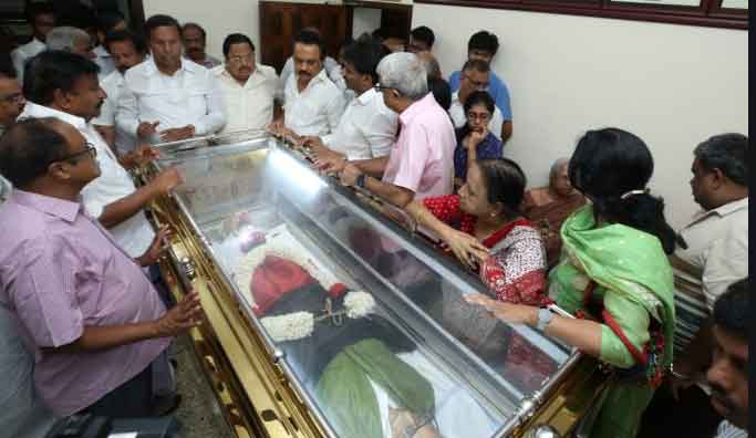 - द्रमुक अध्यक्ष एम. के. स्टालिन समेत सांसदों, विधायकों और पूर्व मंत्रियों ने उन्हें श्रदांजलि दी।