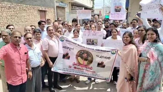 Doctors Protest: हनुमानगढ़ (सच कहूँ न्यूज)। कोलकाता में महिला ट्रेनी डॉक्टर की दुष्कर्म के बाद हत्या के मामले को लेकर आंदोलनरत चिकित्सकों ने शनिवार को टाउन में विरोध-प्रदर्शन किया। विरोध-प्रदर्शन में इंडियन मेडिकल एसोसिएशन के सदस्य चिकित्सक व सरकारी मेडिकल कॉलेज के चिकित्सक शामिल हुए। इस मौके पर डॉ. ओमप्रकाश बिश्नोई ने कहा कि कोलकाता घटना की शिकार हुई पीडि़ता को न्याय दिलाने व दोबारा अस्पताल परिसर में इस तरह की घटना की पुनर्रावृत्ति न हो, इसके लिए विरोध-प्रदर्शन किया गया है। उन्होंने कहा कि एक बेटी जहां कार्यरत है, अगर वहीं उसकी सुरक्षा नहीं है तो वे इस सरकार-प्रशासन से क्या उम्मीद रखें। Hanumangarh News