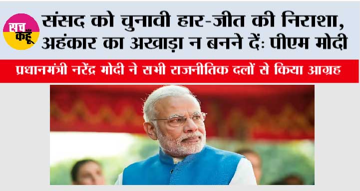नई दिल्ली (सच कहूँ न्यूज)। प्रधानमंत्री नरेंद्र मोदी ने सभी राजनीतिक दलों से आग्रह किया है कि उन्हें चुनावी हार-जीत के परिणामों से बाहर निकलकर इसकी निराशा या अहंकार का अखाड़ा संसद को नहीं बनाना चाहिए और जनता की आकांक्षाओं तथा लोकतंत्र की मयार्दाओं के अनुरूप संसद की कार्यवाही में हिस्सा लेना चाहिए। प्रधानमंत्री ने उम्मीद जताई कि संसद का महत्वपूर्ण शीतकालीन सत्र शांतिपूर्ण ढंग से चलेगा और सभी सदस्य देश की प्रगति के लिए तथा चुने हुये प्रतिनिधियों को अपनी अभिव्यक्ति का अवसर देने के लिए सदन को चलाने में अपना सहयोग करेंगे।