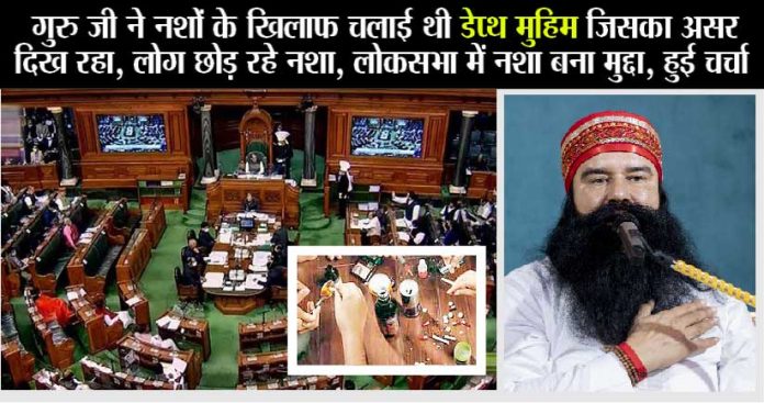 नई दिल्ली (सच कहूँ न्यूज)। लोकसभा में सदस्यों (Parliament ) ने नशे के फैलते जाल पर गंभीर चिंता व्यक्त करते हुए इसे दुश्मनों की साजिश बताया और कहा कि युवा पीढ़ी को निशाना बनाकर देश को कमजोर करने (Drug issue raised in Lok Sabha ) की कोशिश की जा रही है इसलिए इस पर रोक लगाने के लिए सख्त कदम उठाने की जरूरत है। आपको बता दें कि पिछले करीब 5 सालों में नशा रूपी दानव हर घर में अपना दुष्प्रभाव दिखाने लगा है। भारत वर्ष ही नहीं, पूरे विश्व में नशे की यह लत एक भयानक बीमारी के रूप में उबर कर सामने आ रही है, जो समाज के भविष्य के लिए खतरे का संकेत है। घरों को बबार्दी की कंगार तक लेकर जाने वाले इस नशे की रोकथाम के लिए डेरा सच्चा सौदा एक नई सवेर बनकर सामने आया है।