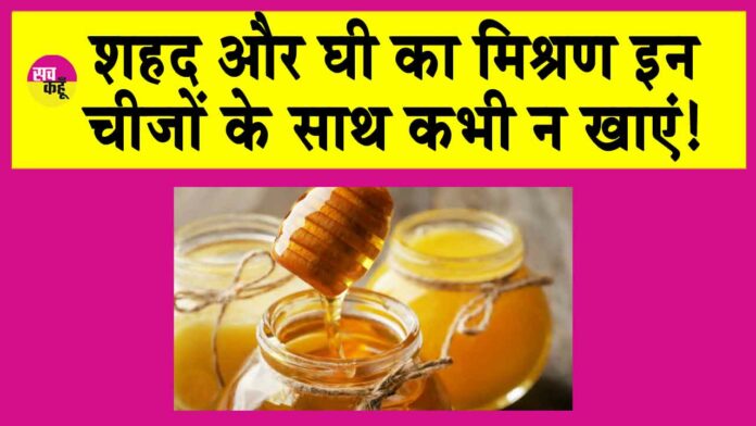 चरक संहिता की मानें तो शहद और घी दोनों ही अत्यधिक पोषक तत्वों से भरपूर होते हैं, लेकिन जब इन्हें समान मात्रा में मिलाया जाता है, तो वे एक-दूसरे के गुणों को संतुलित करने के बजाय विपरीत प्रभाव पैदा कर सकते हैं। इस दोनों का मिश्रण यदि खाली पेट या अत्यधिक मात्रा में सेवन किया जाए तो पाचन तंत्र में गड़बड़ी, सुस्ती, वजन बढ़ना और अन्य स्वास्थ्य संबंधी समस्याएं हो सकती हैं।