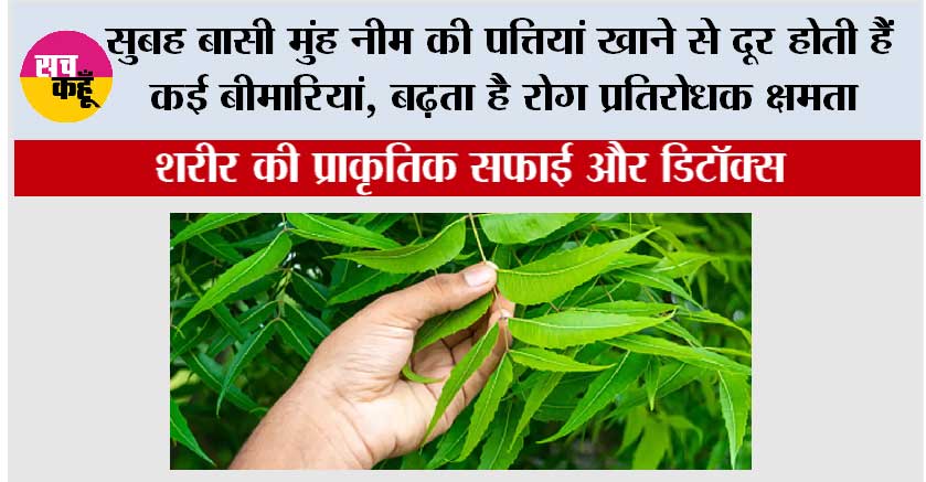 सुबह बासी मुंह नीम की पत्तियां खाने से शरीर में रातभर जमा हुए विषैले तत्व बाहर निकलने लगते हैं। नीम में मौजूद एंटीऑक्सीडेंट और एंटीबैक्टीरियल गुण शरीर की आंतरिक सफाई करते हैं। इससे रक्त शुद्ध होता है और चेहरे पर निखार आता है।