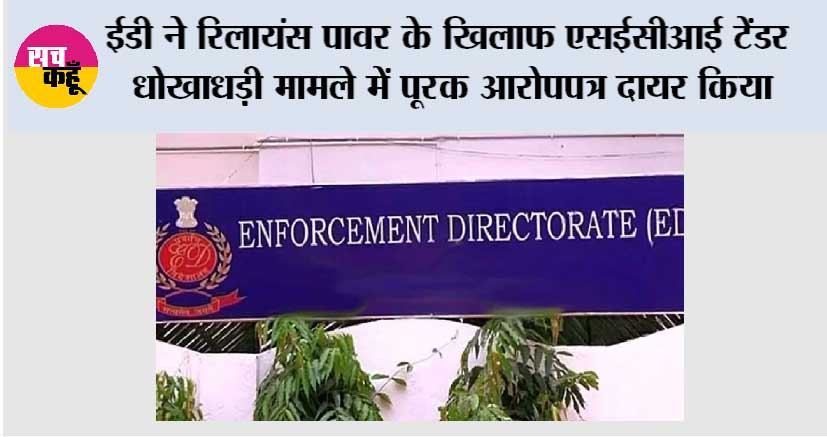 ED ईडी ने रिलायंस पावर के खिलाफ एसईसीआई टेंडर धोखाधड़ी मामले में पूरक आरोपपत्र दायर किया