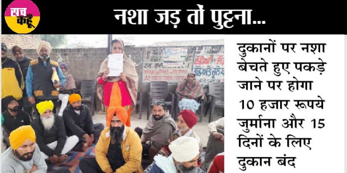 गांव के जिम्मेवारों ने बताया कि अगर गांव में कोई भी नशा बेचता हुआ पकड़ा गया तो उसे 10,000 रूपये जुर्माना लगाया जाएगा और उस जुर्माने से वसूले गए रूपयों से मानवता भलाई के कार्य जिनमें गरीब परिवारों के बच्चों की फीस भरी जाएगी। इस मौके पंचायत मैंबर रंजीत सिंह, कर्मजीत कौर पंच, बबली सिंह मैंबर, अंमृतपाल सिंह मैंबर के अलावा समूह गांववासी उपस्थित थे।