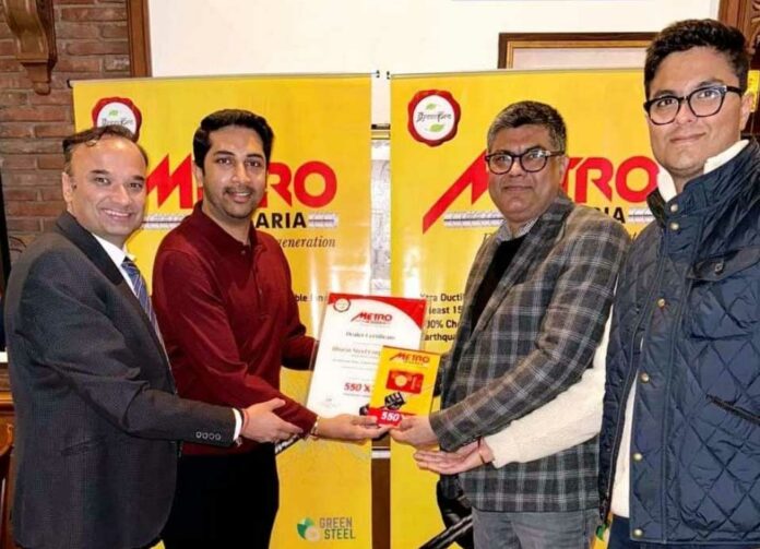 गुरुग्राम के द पाम्स टाउन एंड कंट्री क्लब में हुए इस समारोह में मेट्रो टीएमटी ने गोल्ड अवाड्र्स वितरित किए। इस विशेष आयोजन में मेट्रो टीएमटी ने अपने डीलर्स को उनकी असाधारण उपलब्धियों और उत्कृष्ट योगदान के लिए गोल्ड अवाड्र्स से सम्मानित किया। सम्मानित डीलर्स में भारत स्टील कॉरपोरेशन से दीपक वासन, हवेलिया इस्पात ट्रेडिंग प्राइवेट लिमिटेड से मुनीश गर्ग, अम्बा ट्रेडिंग इंडिया से प्रदीप सिंह तोमर, सुधीर स्टील एंड सीमेंट से सुधीर यादव, हरी दया ट्रेडर्स से वीरेंदर सिंह, खुराना स्टील एंड सीमेंट कंपनी से अमित खुराना और हरी आयरन इंडिया लिमिटेड से दीपक शर्मा शामिल थे। इस आयोजन में उपस्थित डीलर्स और मेहमानों ने प्रेरणादायक कहानियों, मनोरंजन और शानदार आतिथ्य का आनंद लिया।