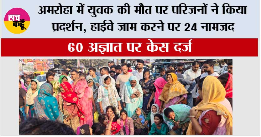 अमरोहा (कपिल कुमार)। अमरोहा के गजरौला थाना क्षेत्र के गांव चौबारा में दो दिन पहले एक युवक की मौत के मामले में परिजनों ने विरोध प्रदर्शन किया। बीते कल, गुस्साए परिजनों ने गजरौला थाने के सामने शव रखकर करीब दो घंटे तक नारेबाजी की। इस दौरान नेशनल हाईवे और स्टेट हाईवे पर लंबा जाम लग गया, जिससे कई किलोमीटर तक वाहनों की आवाजाही ठप हो गई। प्रदर्शन के कारण कई एम्बुलेंस, स्कूली बसें और अन्य वाहन जाम में फंस गए। पुलिस ने प्रदर्शनकारियों को समझाने का काफी प्रयास किया, लेकिन वे नहीं माने।