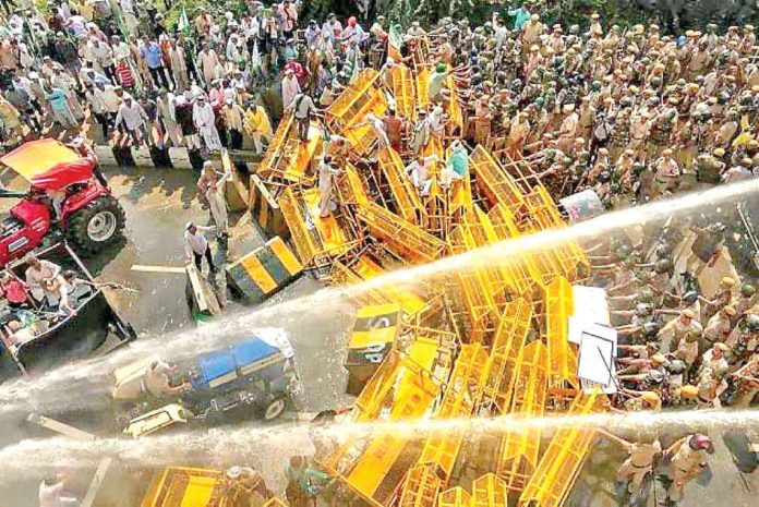 लघु सचिवालय पहुंचे किसानों पर पुलिस ने छोड़ी पानी की बौछारें