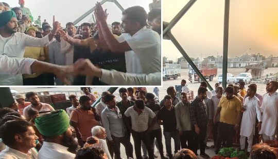 अबोहर (सच कहूँ न्यूज)। जहां एक तरफ रविवार शाम को 4 बजे से किसान भारी गिनती में किन्नू मंडी (Kinnow Mandi) में एकत्रित हुए और अपने भाषण में लगातार इसका विरोध जताते रहे तो वहीं व्यापारी व आढ़ती भी बोली करवाने का इंतजार करते रहे। लेकिन जैसे ही समय निकलता गया तो आढ़तियों ने बोली करवाने का प्रयास किया तो किसान इसके विरोध में जा पहुंचे व एक-दूसरे के आमने-सामने हो गए व स्थिति तनावपूर्ण हो गई लेकिन समय रहते डीएसपी अरुण मुंडन, नगर थाना प्रभारी सुनील कुमार के अलावा मार्केट कमेटी के सचिव मनदीप कुमार व नायब तहसीलदार समेत भारी पुलिस ने बल ने बीच बचाव करते हुए दोनों को अलग अलग कर स्थिति को संभाला।
